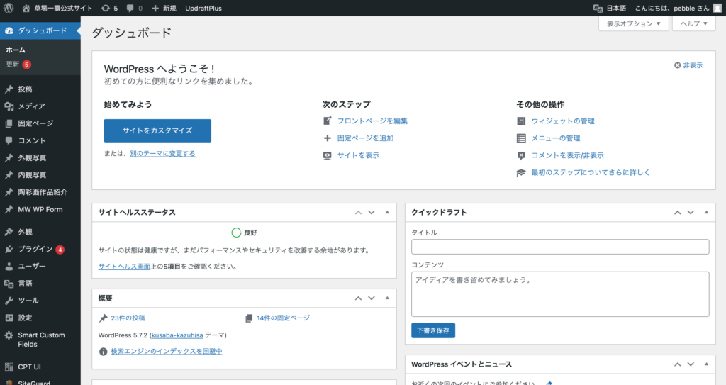 ログインすると「ダッシュボード」と呼ばれる、管理画面のトップページが表示されます。