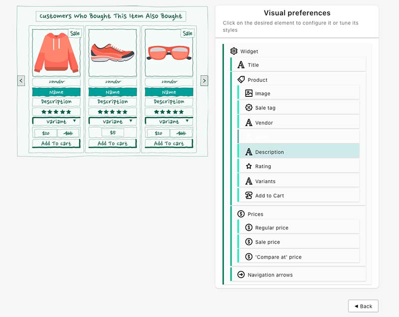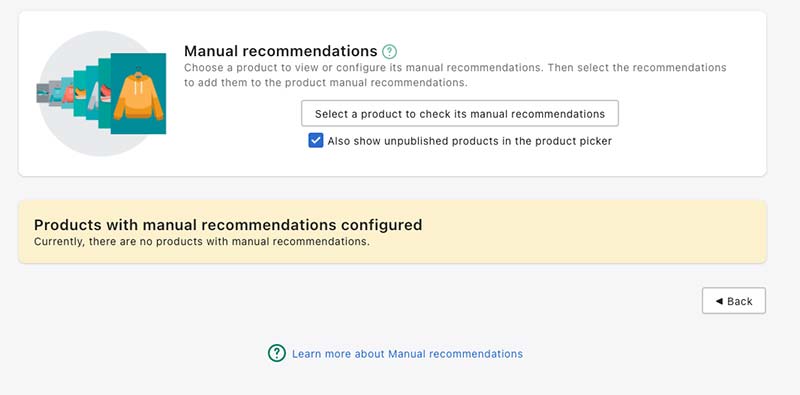 Manual Recommendationでは、各商品に手動でレコメンドする商品を指定することができます。対象商品を選択して、どの商品をレコメンドするかを決めます。