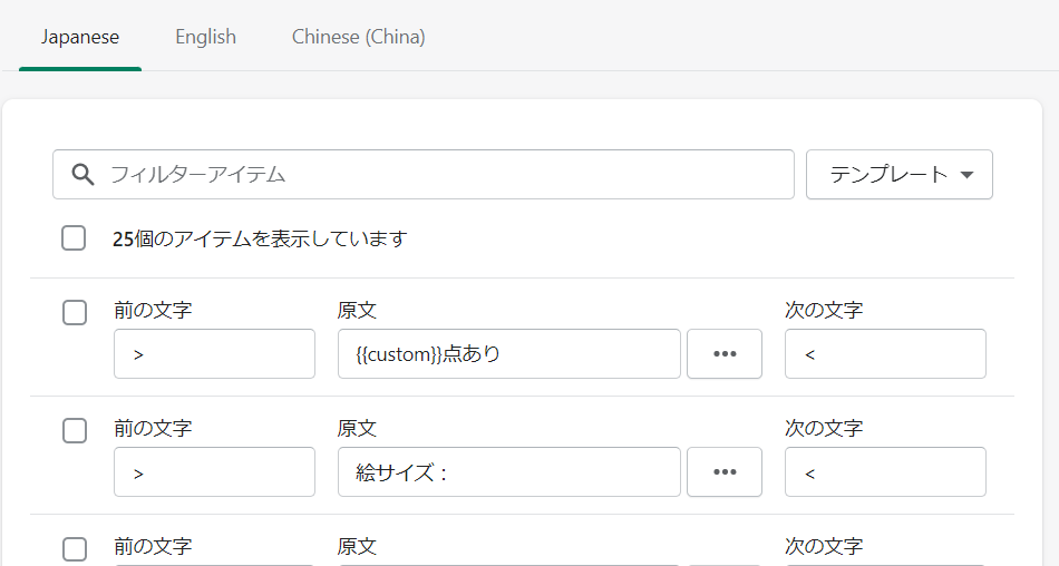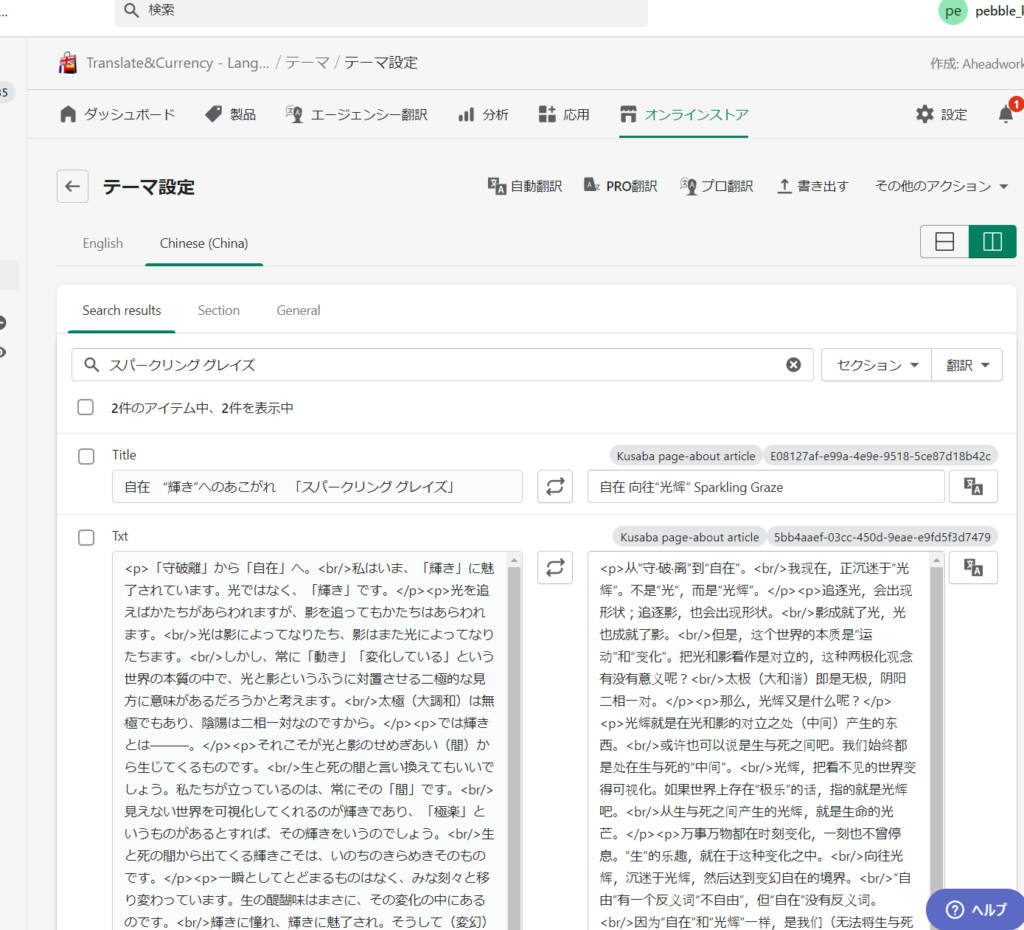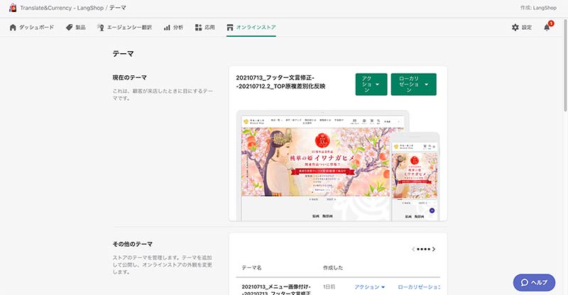 主にオンラインストアのテーマ周りについて、翻訳の反映・確認を行えます。