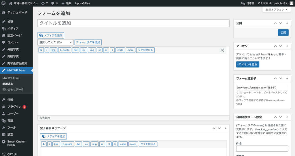 お問い合わせや予約などのフォームを使用したページを作成する際は、まずこちらからフォームを作成した後、