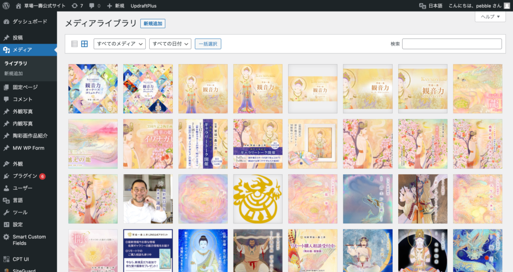 画面左側のメニューから「メディア」を選択すると、アップロード済みの画像などの各種ファイルの閲覧や、新規アップロードなどを行うことができます。
