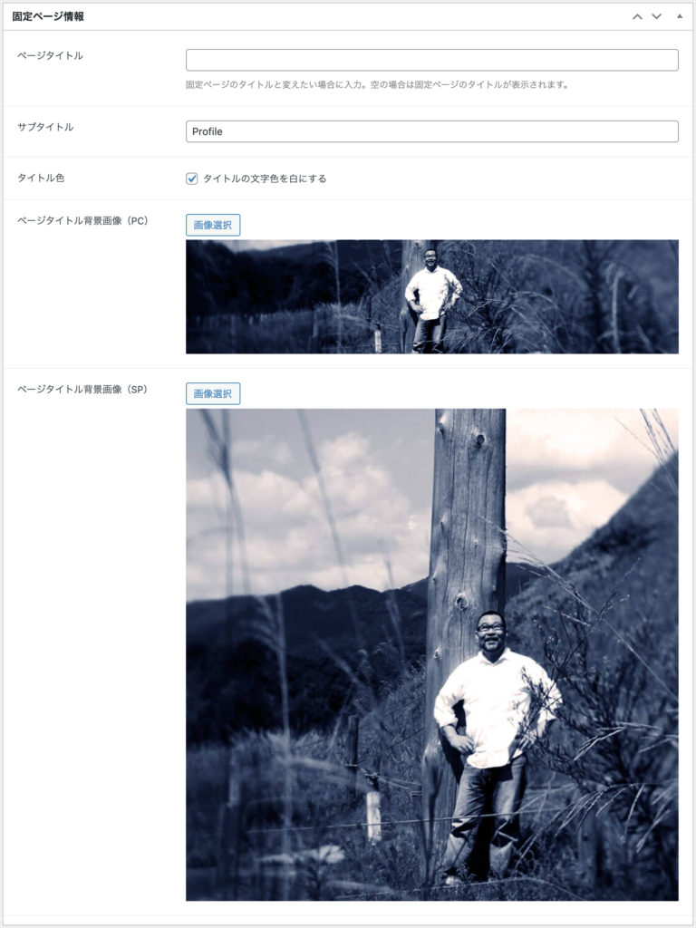 固定ページのサブタイトルやタイトル背景画像の設定を行うことができます。