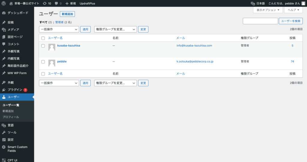 現在は草場一壽工房様用のアカウントが1つ、弊社用のアカウントが1つ登録されております。