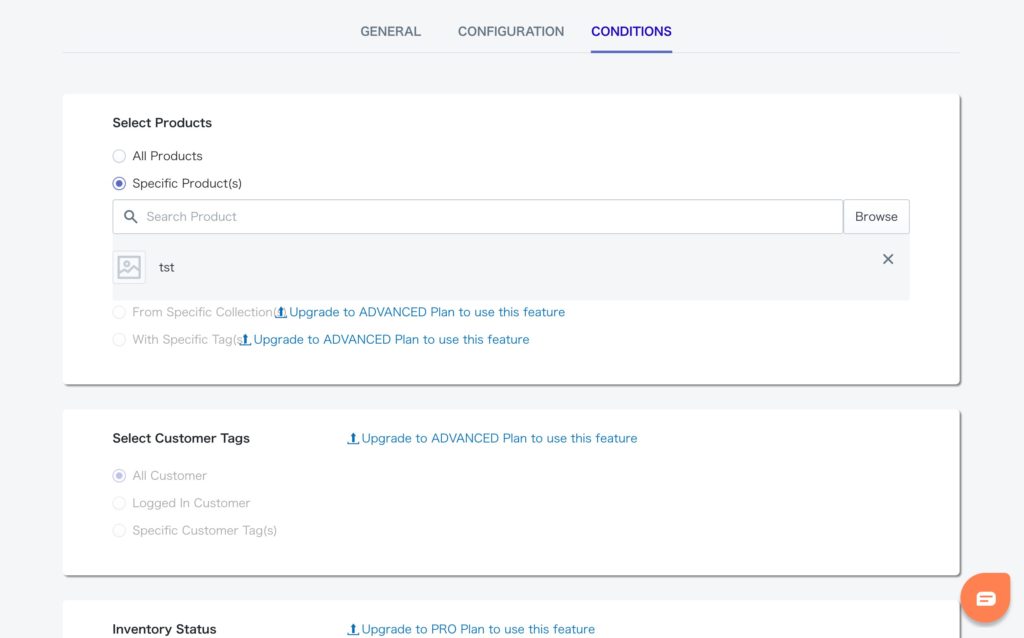 ・どの商品に表示するかを設定します。