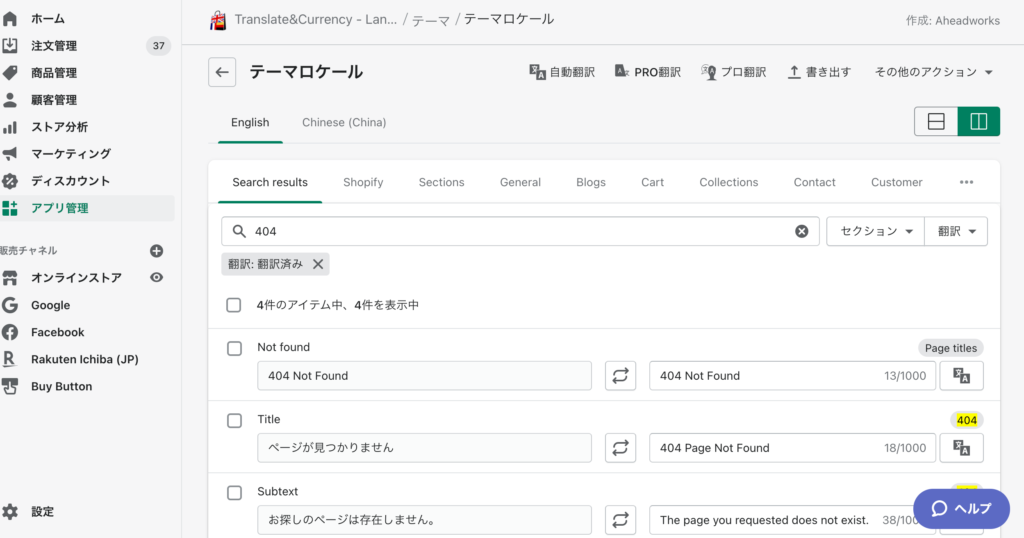 2021年9月14日 ECサイト, その他 ■修正はLangShopアプリにて、行います。 修正は、以下のように行います。 1、アプリを開き、テーマ>テーマロケール に移動 2、404 で検索 3、404ページに関連した文言が表示されます。英語、中国語それぞれ変更したい文言に修正ください。